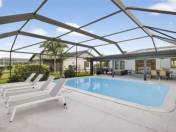 Welcome to your fully furnished, move-in ready pool home in Cape Coral. Perfectly situated near shopping, dining, and entertainment, this 4-bedroom, 3-bathroom home offers both comfort and convenience. The primary suite includes a walk-in shower and dual-sink vanity, while the guest baths are thoughtfully designed for ease and accessibility. A split floor plan ensures privacy, complemented by a spacious living and dining area. The stylish kitchen features stainless steel appliances and a breakfast bar—ideal for entertaining family and friends.