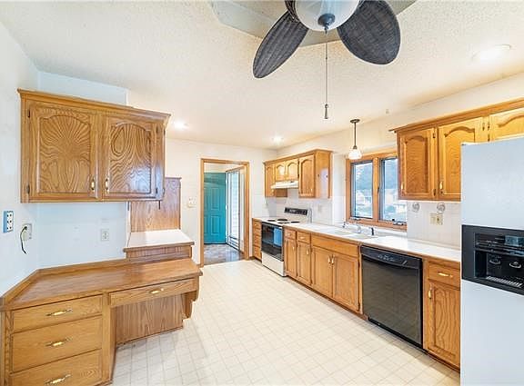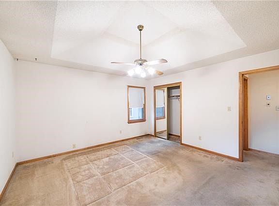 Great space with great potential. Open living room with vaulted ceilings and fireplace. Dining area has a slider to back deck. Deck overlooks large, fenced yard. Cul-de-sac lot makes for an extra large backyard. Spacious kitchen with plenty of counter space and many cabinets and built-in desk. Master bedroom boasts 2 closets, one of them a walk-in. Clean, unfinished basement is ready for your finishes. Stubbed for half bath. Oversized garage perfect for a workshop or extra storage. Garage measures 24' deep. Exterior has easy maintenance vinyl siding. Home does need new carpet and paint, but easy transformation to a great home. 2022-08-25