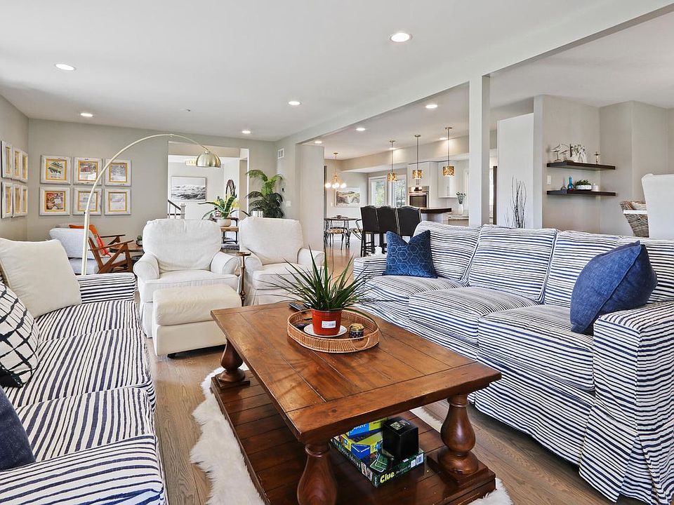 Summer is around the corner & you will not want to miss this stunning home that needs no improvements... a rare find around Geneva Lake! Rebuilt Mid Century Modern home offers a Contemporary flair as well as amazing views Of Country Club Estates Golf Course. Streaming sunlight through the open staircase windows upon entry invite you into the spacious Great room, a step up dining room & doors to outside patio.. All of this opens to a beautiful custom kitchen, cabinets w/quartz counters, stainless steel appliances & patio off the eating area. Venture upstairs & sit out on the spacious roof top deck and take in the gorgeous golf course views. Large master w/walk in closet & amazing tiled bath, 2nd floor laundry. Finished lower level acts as 4th bedroom & rec room/in law suite CCE amenities.