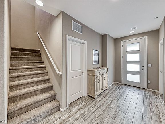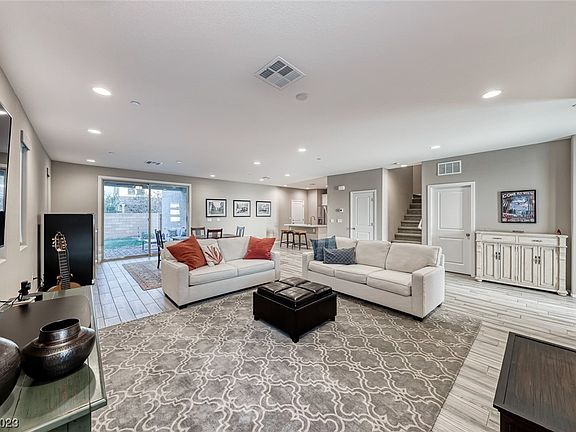 VA ASSUMABLE LOAN AT 3.125%! Boasting a premium location directly across the street from the vibrant 50 acre Central Park in desirable Cadence, this home features stunning views of the iconic Las Vegas Strip, mountains & park. As you step through the front door, you're greeted by a spacious & thoughtfully designed interior. The downstairs bed & full bath provide flexibility & convenience. The open-concept living & dining area creates an inviting atmosphere for gatherings & everyday living. The upgraded kitchen is equipped with stainless-steel appliances, quartz countertops & white cabinets. Ascend the staircase to the 2nd floor, where you'll find the versatile loft space & remaining bedrooms, including a luxurious master suite with panoramic Strip views that showcase the breathtaking city lights. The well-designed backyard features a covered patio & artificial turf. Imagine sipping your morning coffee on the front porch or balcony, enjoying the picturesque views this home has to offer!