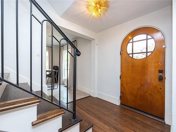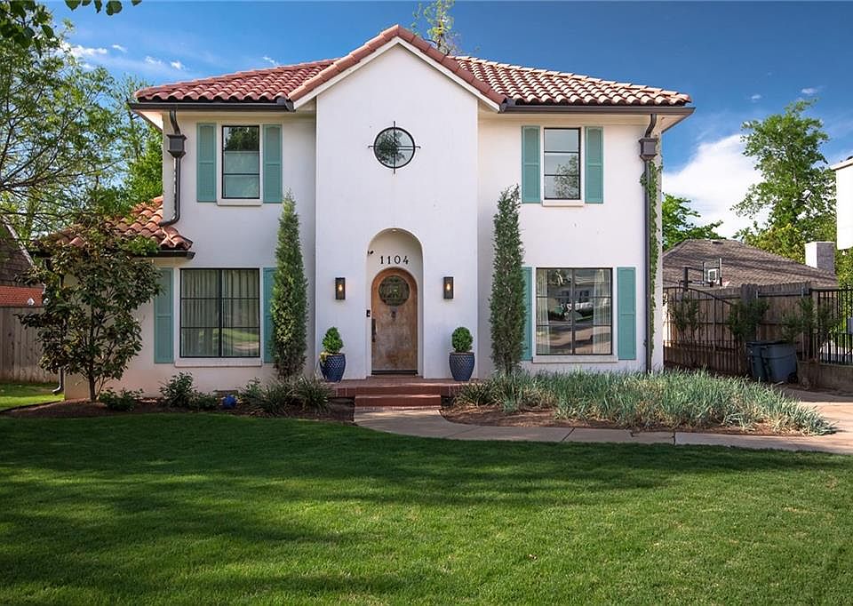 Charming painted Mediterranean home that has been completely remodeled within walking distance of Nichols Hills Plaza. Upon entering you will find beautiful wood floors and lots of natural light. The kitchen has a gas cook top with ample cabinetry and views of the low maintenance back yard with sprinklers. The primary bedroom has large walk in closet and double vanity in the bathroom. Spacious outdoor patio off the second upstairs bedroom. Laundry room with stacked washer and dryer (which stay with the home) along with the refrigerator and all the chandeliers. Rear access to the two-car detached garage with an electric gate for added privacy.