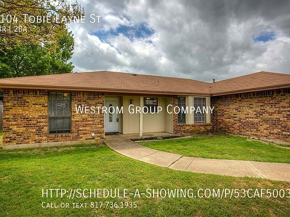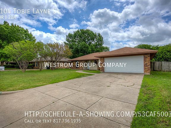 This 1278 square foot single family home has 3 bedrooms and 2.0 bathrooms. This home is located at 1104 Tobie Layne St, Benbrook, TX 76126.