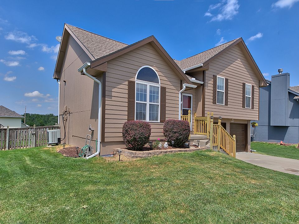 Fabulous Front to Back Split. This 3 Bedroom, 2 1/2 Bath home has two large living spaces. Spacious Eat-in Kitchen includes walk-in pantry and walks out to the oversized deck. Laundry is conveniently located on the bedroom level. Lower level family room has half bath and walks out to fenced yard. Huge storage space under the stars plus large two car garage. This home is a must see. Minutes from Smithville Lake and Paradise Pointe Golf Course. New Elementary School Coming Soon! New Carpet Throughout.