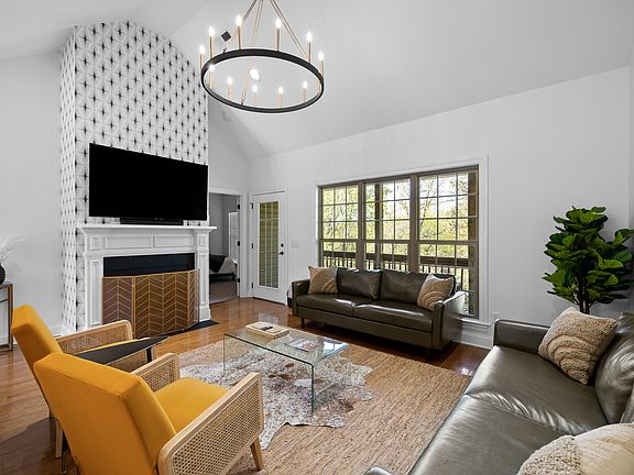 Upon entering the home, you will be greeted by a bright and airy living room w/ vaulted ceilings. The living area flows seamlessly into the dining area and kitchen. The kitchen is equipped with stainless steel appliances, sleek granite countertops, and TONS of cabinet storage.