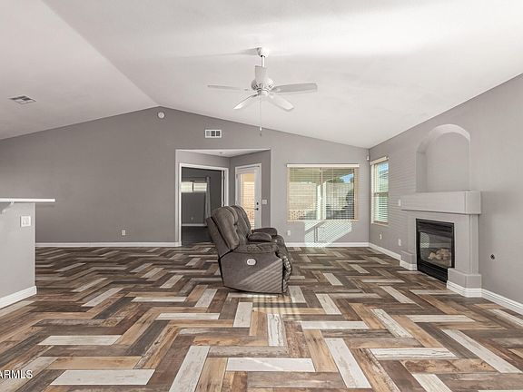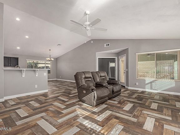 Welcome to this highly desirable 3-bedroom, 2-bathroom single-level home in Parkwood East! Step inside to an inviting open great room floor plan with vaulted ceilings, creating a light and airy atmosphere perfect for both relaxing and entertaining. Recent updates include a brand-new AC unit, new garage door, and energy-efficient windows for year-round comfort and savings. Stylish tile and luxury vinyl plank flooring flow throughout, combining durability with modern design. Don't miss this opportunity to own a move-in ready home in one of the East Valley's most sought-after neighborhoods!