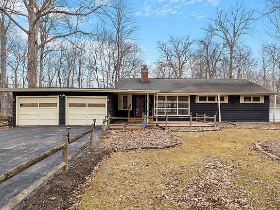 Unique ranch-style home sits on a serene 1.25-acre wooded lot, offering a peaceful, country-like atmosphere! This private retreat is off the beaten path, yet with the convenience of being just minutes from shopping and dining along Route 30. At over 1,700 square feet of living space, the home includes three bedrooms, one full bathroom, and a spacious two-car attached garage. Hardwood floors in the living room and bedrooms add warmth and character. The partially-finished basement provides flexible space for storage, recreation, or hobbies. Basement also features an additional set of laundry appliances as an alternative to the main-floor laundry. Step outside to enjoy the large deck-ideal for entertaining-and cool off in the above-ground pool during the warmer months. This property offers the perfect blend of privacy, natural beauty, and modern convenience. Bring your remodeling ideas and make this home your own. Property is being conveyed "as is".
