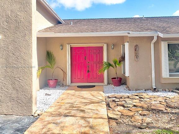 Perfect Party Home-Ideal for Entertaining! Kids/Family/Cocktail/Private Parties in This 4/2 SFH in Desirable Calusa Shores No HOA Fees. Corner Oversized Lot.Open Concept Layout.Views of Pool and Patio Throughout. Circular Drive Plenty of Parking and 2 Car Garage. Double Door Front Entry to Expansive Great Room Vaulted Ceilings Views to Pool and Patio. Walk Out to Large Built In Wet Bar Under Covered Patio Overlooking Generously Sized 13' x 33' In Ground Pool. Lounge at Bar or Around Pool Deck. 16" Spanish Tile Flooring. Aromatic Cedar Lined Closets For The Environmentally Conscious.Wood Built in Desk in 4th BR. Master BR Walk Out Door ro Pool Deck. Hurricane Accordian Shutters. New Fencing. Hardwired Security Sensors.12 HD Camera System w/Hard Drive. Floor Safe! 2Sets AtticStairs. AV SURV