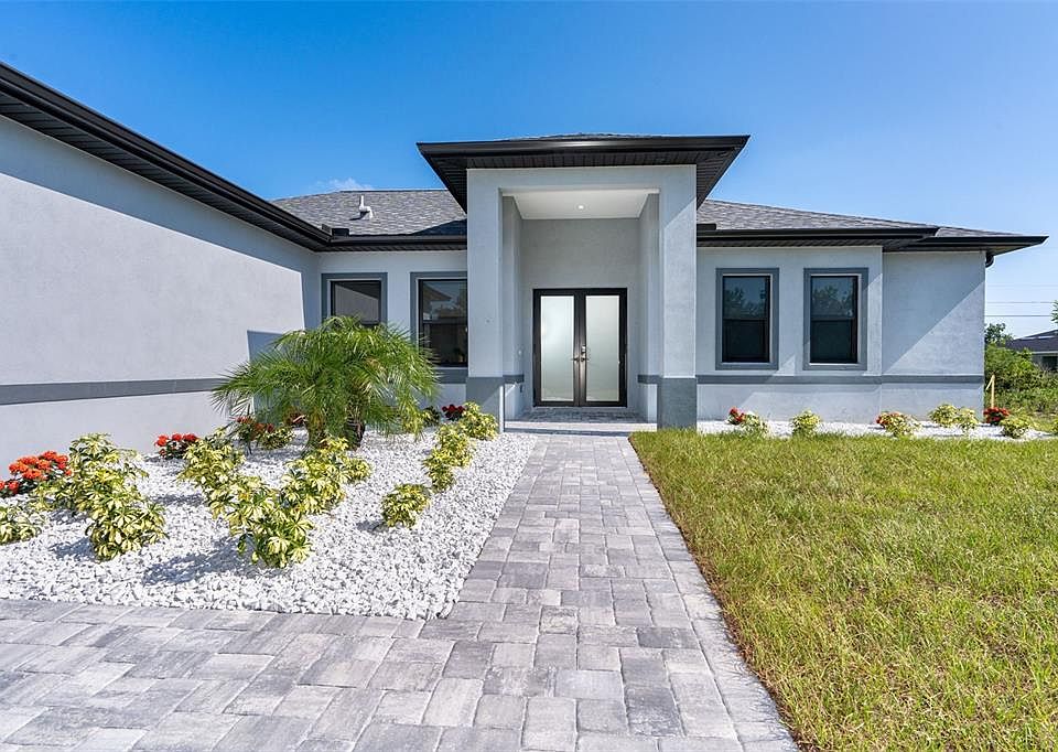 Under Construction. MOVE-IN READY, NEW CONSTRUCTION, 15 MINUTES TO THE BEACH, WASHER & DRYER INCLUDED – Welcome home to the Jasmine model, offering luxury living in the heart of Englewood, FL. Why wait to build when you can move right in? This beautiful single-level home is perfect for anyone looking to downsize or relocate. The Jasmine has everything you could want in a new home! From the paver driveway and modern entry, you’ll step through frosted, double glass doors and feel the immediate WOW factor from the large porcelain tile flooring, tall ceilings, and doors. You will fall in love with the open concept Living Room, Dining room with accent wall, and Kitchen showcasing a double waterfall, oversized quartz island with functional cabinets on the front. The wall cabinetry flows to the ceiling creating a dramatic backdrop for entertaining family and friends. A full-size pantry with built-in shelving provides space for all your small kitchen appliances and favorite recipe items. There’s even a corner meet sliding glass door for easy access to your covered lanai. Moving to the Owner’s suite, you’ll discover a huge walk-in closet, double vanity with full length mirror, and a wet room, complete with freestanding tub and rain head shower. For those who need an office/studio space, the Jasmine model has you covered. Located on the front of the home where natural light pours in to provide energy and inspiration, a double barn door entry adds another designer touch to the space. The Laundry and Garage continue to impress with cabinetry flowing to the ceiling, with full size utility sink and included washer and dryer. The garage is treated with a full chip, epoxy floor coating and impact glass side door. Imagine living in this luxurious home just minutes away from world class fishing, boating, kayaking, paddle boarding, golfing, cycling, and dining in the heart of Englewood and surrounding villages of Venice and Boca Grande. Experience the best of Florida living now. Schedule a preview of your new lifestyle today! Don’t miss this opportunity. Similar homes under construction and available for purchase at 12004 Newgate Ave, 6191 Kambach St, 6192 Kambach St.