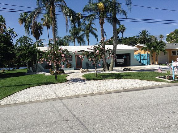 Own a true piece of Paradise! This one of a kind beautiful home is located on a serene tidal lake within walking distance of Madiera Beach. Its a unique property offering a majestic water view and sunsets from your livingroom, kitchen and master bedroom. This home offers not one but two porches to enjoy your outdoor living space or allow for future expansion. The yard is large enough to fit a pool. Bring your kayak, paddleboard and fishing rod and enjoy a relaxing time out on the lake or in a lounger in your serene private oasis. It also has an outdoor shower! So many options! This home is solid concrete block..with a barrel tile roof that was added by the prior owner. The interior features a quaint galley kitchen with huge pantry, beautiful terrazzo floors, crown molding throughout, spacious living room, gorgeous expansive diningroom with wall to wall windows and french doors overlooking the beautful backyard and lake. The master bedroom also has french doors facing the lake, large closet and will accomodate a queen or king size bed. The guest bedroom also features a large closet and can accomodate a queen or king size bed. The bathroom is original 1960 vintage..you can choose to update to your style or enjoy its vintage vibe! The kitchen was updated by the prior owner, however it could use a minor facelift or change to suit your personal style! The yard is beautifully landscaped with 2 fountain features, and parking is easy with your oversized pavered driveway and a one car garage. Dont miss out on a one of a kind opportunity! Excellent neighborhood and location..walk or ride your bike to the grocery store or beach. Pre-Qualified buyers only. Showing by appointment only.