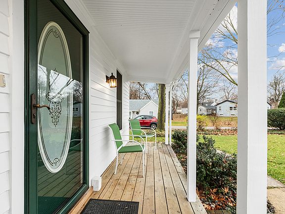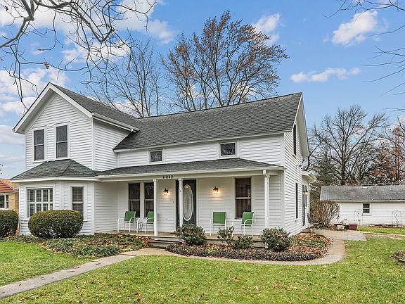 A rare find, nestled smack-dab in the very heart of downtown Mokena. Perfect for vintage home fans, right down to the welcoming covered front porch. Boasting plenty of room inside and a flexible floorplan that can accommodate your needs. Gracious living room is highlighted by a bay window with bench seating and custom plantation shutters. Formal dining room includes white buffet cabinet. Spacious kitchen offers white cabinets from Riverton, hardwood floors, pass-through nook to den (great for coffee station, or enclose to make a closet) and plenty of natural light. 1st floor bedroom has access to shared main level bath with oversized pedestal sink and 5' shower with seat. Main level den with glassed French entry door could serve as home office or bedroom #4 (currently has laundry area in the closet for main level convenience). The 2nd floor features two more nice sized bedrooms, a bonus room with a walk-in closet which is perfect for a playroom or homework space, and a 2nd full bath. The interior was gutted to the studs in 2009, which is the age of roof, Pella windows, HVAC, plumbing, water and sewer mains from street to house, electric, insulation, drywall, baths, kitchen, appliances and more. Real wood white panel doors and trim, including chunky baseboards and some crown molding. Real oak hardwood flooring throughout (except for baths and staircase). Detached 2 car garage (needs work). Cellar-type basement has some 100+ year old stone walls. Home dates back to the turn of the previous century and hasn't been on the market since 1965. Beautiful mature lot with abundant landscaping and garden beds, vintage grapevine trellis. Great walkability to commuter train, shopping, village hall, library and schools. Come see 11042 Saint Mary's Road for yourself and prepare to make your future memories here.