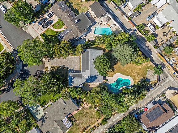 Wow, classic Porter Ranch home in superb neighborhood close to everything in the valley. This 4 bedroom, 3 bath pool home is located on a huge 18,000+ square foot lot. They don't make homes on big lots like this anymore. The home has been nicely cared for with some upgrades in the kitchen and bathrooms. This home is ready for the next owner to add some updates and build lasting value. A large sunroom has been added to the living room and is fully enclosed. Down the hall from the living room are 3 bedrooms (one is being used as an office) and then the master bedroom. Very nice wood ceiling and attached master bath with dual sinks. A large walk in closet compliments the master suite with a separate access to the backyard. The backyard is like a garden, very green and lush with valuable access in the rear. A sparking pool is set amoungst the garden-like back yard. Check and determine the viability of building an ADU and increase the value of this investment. The owners have installed beautiful front driveway pavers all the way to the street. Lots of potential with this home.