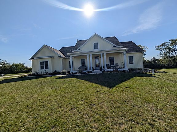On just over six acres of beautifully landscaped land. This 1.5-story residence offers 4 spacious bedrooms, 2.5 baths, and a thoughtfully designed layout perfect for both everyday living and entertaining. Step inside to discover a large master suite, an expansive walk-in pantry, and a chefs kitchen featuring a premium ILVE dual fuel range. The home is equipped with a Kinetico water softener and a GMX waterproofing system in the basement, ensuring comfort and peace of mind year-round. Additional upgrades include a gravity drain system, poured concrete sidewalks, a driveway pad, and a patio ideal for outdoor gatherings. The yard has been professionally leveled and seeded, with fresh landscaping that frames a serene koi pond,your own private oasis.