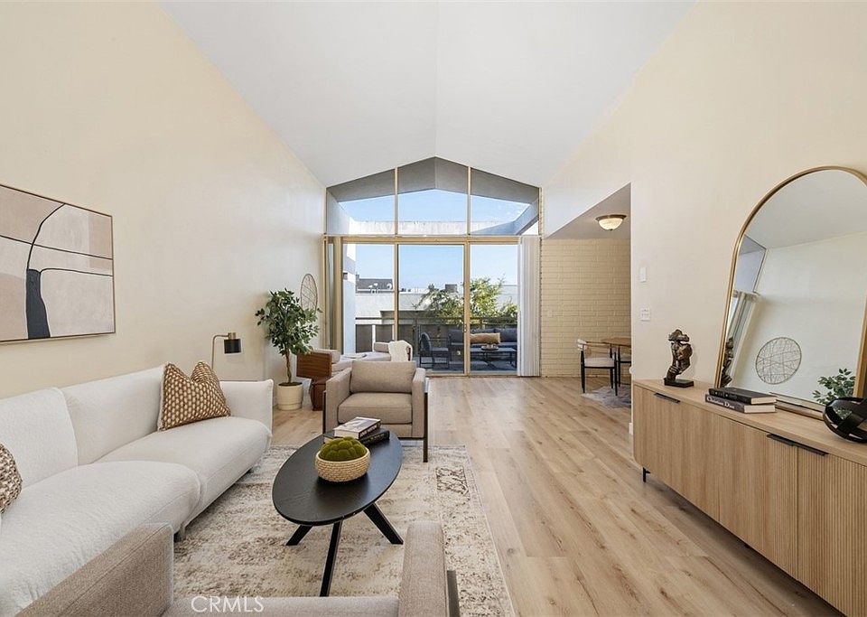 Welcome to the top floor Penthouse "loft like'' charm in the heart of Westwood, and walking distance (0.3mi) to UCLA. This beautifully renovated unit boasts impressive features with soaring 16-foot ceilings and an expansive floor plan. Stepping inside the 2-bedroom 2-bathroom condo to discover a spacious, light-filled living area with brand new luxury vinyl flooring, and a fresh coat of paint throughout. With the extra large windows, enjoy the seamless indoor-outdoor living with a private balcony, perfect for relaxing or entertaining while taking in the views of the surrounding neighborhood. The contemporary kitchen is a chef's delight with new sleek quartz countertops, subway tile backsplash and fixtures that complement the unit's modern aesthetic. Additional highlights include a new HVAC system installed in 2023, ensuring year round comfort, as well as in-unit laundry hookups, with access to additional communal laundry facilities, and additional storage space. The condo also includes two side-by-side gated covered parking. Don't miss this opportunity to make the Penthouse your home!