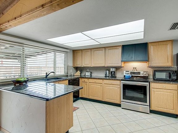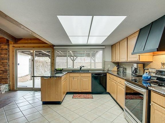Excellent location, just minutes from 635 & NW Hwy. Situated on an oversized corner lot, this beautiful home has incredible curb appeal. Many updates including slate floors in the entry way & wood laminate floors throughout 2 living areas, dining & bedrooms. Entry & hall ceilings lined with wood planks, wood beams on living room ceiling & gorgeous floor to ceiling stone fireplace give this home a true custom feel. Perfect for entertaining, the kitchen is open to the living room and updated with granite counters, stone backsplash & stainless steel range. Large bedrooms. Other updates include brushed nickel hardware, neutral paint colors, 2 in blinds & 8 ft wood privacy fence. MUST SEE