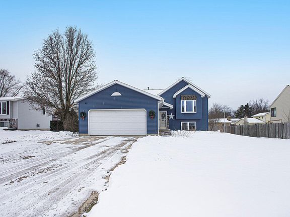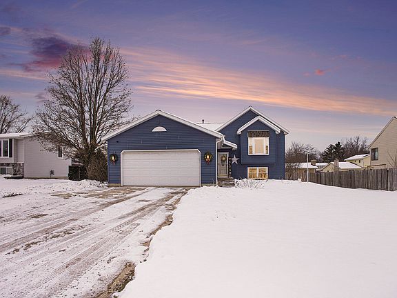 Situated between Grand Rapids and the Lakeshore, this inviting home offers comfort, convenience, and style. The open-concept main living area features cathedral ceilings and a bay window that fills the space with natural light. The kitchen boasts a center island, stunning epoxy countertops, stainless steel appliances, and a sleek glass tile backsplash. Cabinets were painted in 2022, new flooring in 2023. Two bedrooms and a full bath complete the main floor. The lower walkout level expands your living space with a cozy family room featuring a gas fireplace, a spacious bedroom with a walk-in closet, a full bathroom, additional storage space and new carpet installed throughout in 2025. Outside enjoy the new 2025 12x12 deck off the dining room, which leads down to a patio. The fully fenced backyard also includes a storage shed. Other improvements include; new central air 2025, new furnace 2024, new water heater 2023.