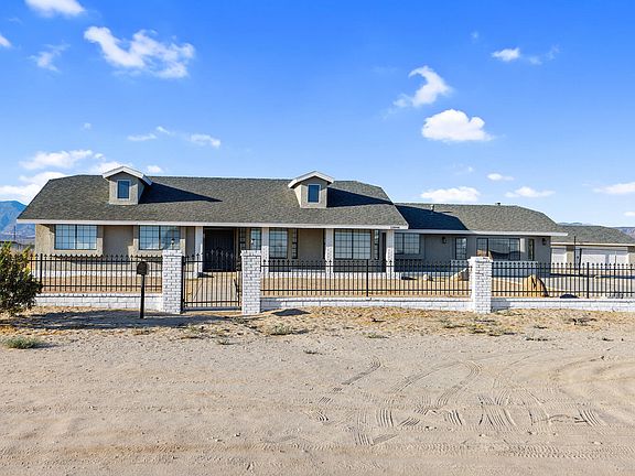 WELCOME TO RANCHO ROCA PEQUINA! THIS RARE OFFERING....ONE OF A KIND GATED CUSTOM HOME with ALMOST 4 acres of FLAT ACREAGE with a 4 CAR DETACHED GARAGE and bonus room to make a perfect workshop! Per Tax Records, 2,598 square feet of living space! Tax records state 3 bedrooms, but by adding a closet to the ginormous bonus room possible 4th and additional room could act as a 5th bedroom! Outside looks like a true sprawling one story estate compound with plenty of room to store all your RV's and work equipment PLUS acres for your ANIMALS to roam! Country style living with an additional outbuilding and animal shelters on premises make this property a possible TRUE WORKING RANCH. This property is zoned LCA11*, light agricultural; food, plants, and even have chickens and horses!...Live the dream of having your own farm! The parcel goes from R12 to R14. Lots of concrete driveway to park plenty of vehicles. This home is an ideal set up for multiple households to occupy, or to even work from home! Double door entry, and you are pleasantly greeted with a formal living room with large bay window looking out to the neighborhood. Formal dining with recessed ceiling with matte black chandelier, window seating with additional storage underneath. Fresh interior and exterior paint! Plank wood look floor in living room, dining, family room, and main bedroom. The kitchen has updated shaker panel doors, stainless steel appliances, & Corian counters with integrated sink make clean up a breeze! The spacious family room with wood beamed ceilings and large floor to ceiling brick covered wall with fireplace. Bask in the sun without the weather elements in the huge tiled patio room! Huge sewing or arts and crafts room in the laundry room! There is an additional room off laundry that could be used an office, or arts and crafts room or ? It's your choice! Possible sub-divide to build other homes? Buyer to investigate.