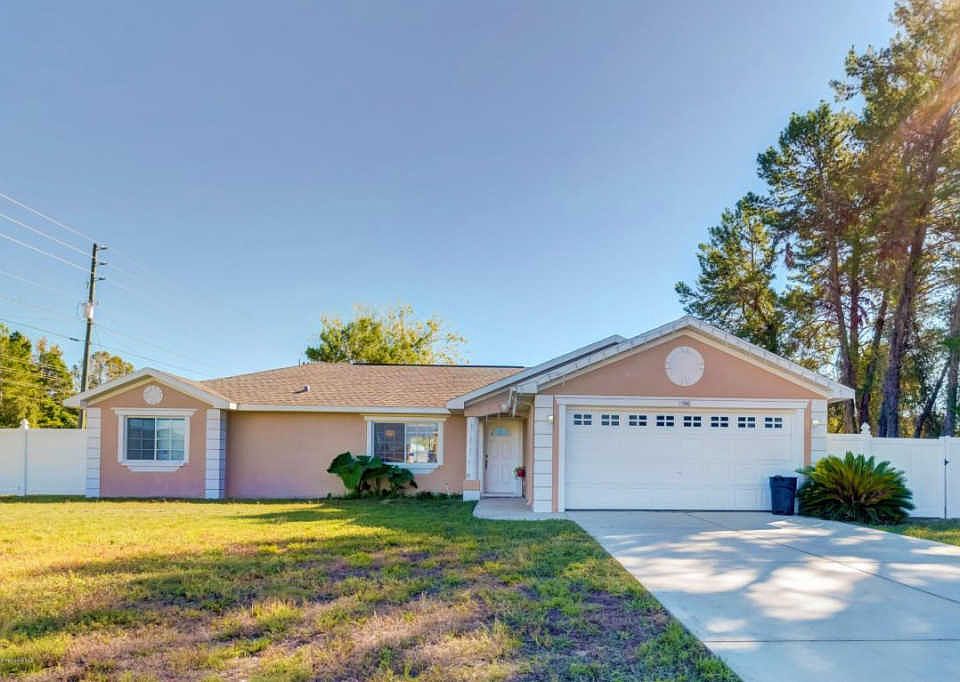 Move-in ready, 3/2/2 half acre property, this home features all ceramic flooring, split floor-plan, high ceilings, master bedroom suite with walk-in closet and bath, large living room-dining room combo, open kitchen. All white appliances, range, refrigerator and dishwasher included. Concrete drive into 2 car garage, with washer/dryer hook-ups. Fully fenced with white vinyl fencing with large gate on side of home with a gravel drive for your rv and/or utility trailer. Pigeon approved area.