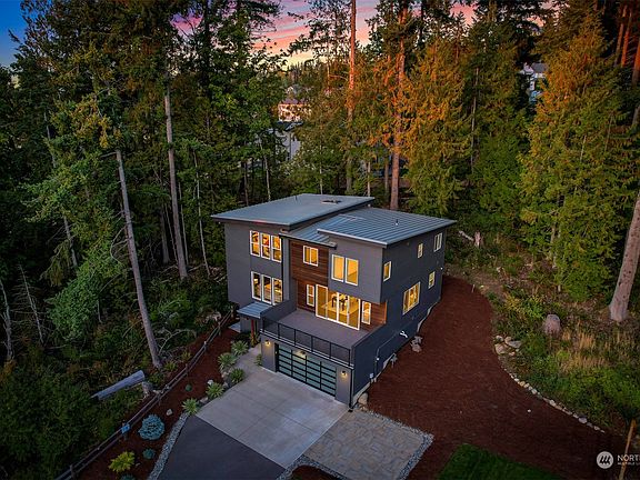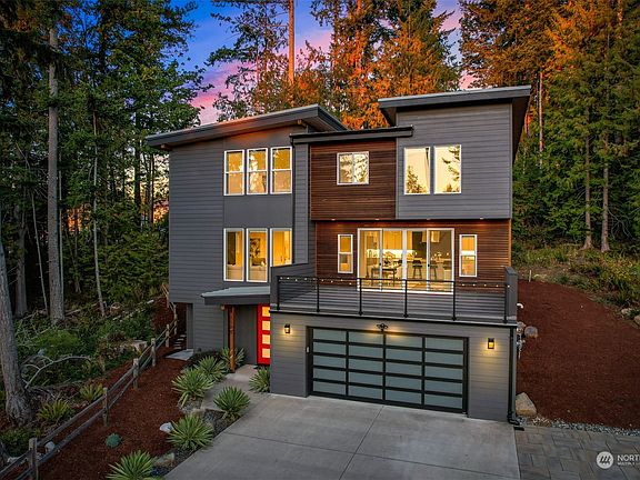West facing bay view custom built home with location, style, and quality, the three priorities of the owner when built. Nestled on almost 1/2 acre on the South side in the desirable and sought after Samish Hill neighborhood. Enjoy 5 bedrooms, plus office, 4 baths and an amazing great room with floor to ceiling glass and a massive deck bathed in sun. The main floor bedroom is a 2nd primary with en suite bath, and designed as a flex room for a theater, fitness, or second home office. The kitchen is one of the biggest you will ever see and is appointed with Miele appliances and upgraded cabinetry. Other features include, a 4 car garage, power blinds, zoned heating and air conditioning, and Sonos sound. Only 4 years old and better than new!