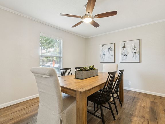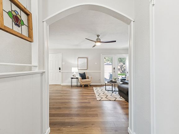 Other updates include a water heater in 2020, the roof replaced in 2024, and a new HVAC system installed in August 2025, ensuring year-round comfort. Every detail has been thoughtfully updated, including modern ceiling fans and a clean, contemporary design. Outside, there is new exterior paint, a huge backyard with shade trees, ideal for gatherings, pets, or play. Completing the backyard is a board-on-board, nicely stained fence with an electric gate for added privacy and convenience. This move-in-ready Garland gem combines style, function, and convenience with easy access to 635.