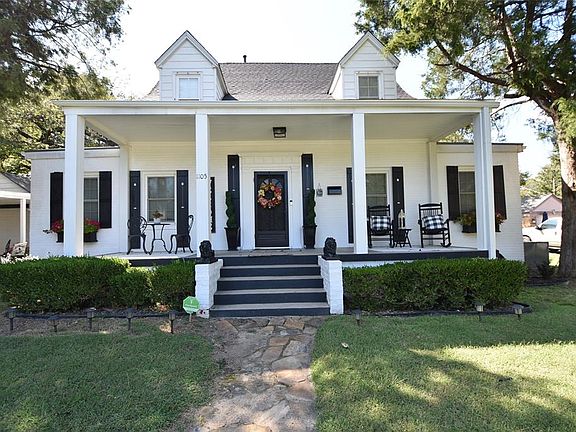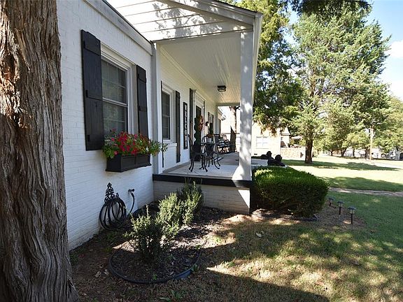 Charm overload! This beauty is move in ready with updates galore. Sitting on the Bluff in Wewoka, this home will certainly catch your eye as soon as you drive up. Fresh paint, spacious front porch perfect for morning coffee and evening chats and the classic screen door are just the appetizers. Step inside to find beautiful wood floors, Hunter Douglas custom wood blinds throughout, dramatic staircase and sitting area just inside the front door. Arch doorways on the left and right take you into the living and dining areas. Living room features, gas log fireplace with built in shelving on either side, wall light sconces and windows for lots of natural light. Dining area, which is dreamy and light, is just off the cozy kitchen with newer gas range, fresh paint, light fixtures, tile backsplash, stainless sink, dishwasher and built in cabinets. Primary bedroom is large and spacious. Secondary bedrooms are nice size and have original wood floors. Roof and gutters were replaced in 2023, carport was added in 2022, backyard deck and pet kennel, additional outside faucets, and gas stove were all added in last 2 years. Home has Ring security cameras with night vision, lights, audio and siren will remain with the home. New owner may continue subscription. Owner currently pays $10/month. Windows and doors have Front Point sensors. Detached garage with a carport provide additional coverage and storage.