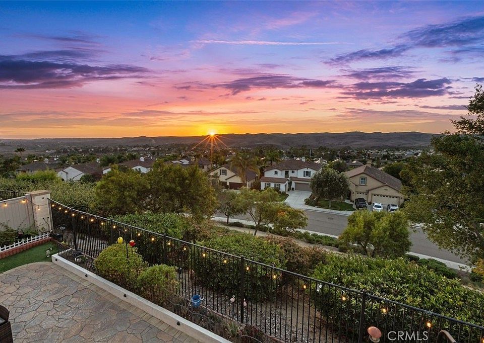 PANORAMIC SUNSET VIEWS! SPACIOUS LAYOUT! DOWNSTAIRS ENSUITE! Located in the highly desirable Arrowood Community, this stunning 4-bedroom, 3.5-bath home offers 3,080 sq. ft. of beautifully designed living space with breathtaking westerly hilltop views. The open-concept kitchen features quartz countertops, a large center island with bar seating, stainless steel appliances, and rich dark wood cabinetry, all complemented by engineered hardwood floors downstairs. It flows seamlessly into a spacious family room with a cozy fireplace and a large dining room, perfect for gatherings and entertaining. A first-floor ensuite bedroom provides flexibility for guests or multigenerational living. Upstairs, the spacious primary suite offers a private balcony, walk-in closet, soaking tub, separate shower, and dual vanities. The upper-level also features luxury vinyl plank flooring, two additional well-appointed bedrooms with walk-in closets and a Jack and Jill bathroom, a spacious family room, a dedicated office, and a convenient upstairs laundry room. Step outside to your entertainer’s backyard, featuring artificial grass, a gazebo, fire pit, BBQ grill, and a bar area with refrigerator and sink—all framed by unobstructed panoramic sunset views. The home also includes a 3-car garage, Vinyl Fencing, and Solar panels providing energy efficiency and cost savings. Residents of Arrowood enjoy resort-style amenities, including a Jr. Olympic-sized pool, clubhouse, walking trails, and community parks. Golf enthusiasts will love the nearby Arrowood Golf Course, one of North County’s most scenic and playable courses. Low HOA and served by the award-winning Bonsall School District, with Bonsall West Elementary conveniently located adjacent to the community.