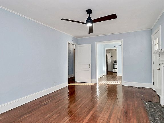Charming front porchCeiling fansWarm hardwood floorsUpdated vanityExpansive backyard