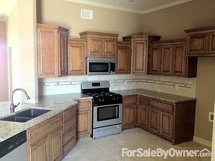 Country-French open floor plan, 3 bedrooms and 2.5 baths down. Custom glazed kitchen cabinets, granite countertops, composite sink. Beautiful scraped wood floors in living, tile in large laundry, kitchen, dining entry. Large closets, extra built-ins and gas fireplace. Large bonus room up with full bathroom and closet. Spacious covered patio and 2 car garage.Additional property info: http://www.forsalebyowner.com/listing/64A24?provider_id=28079