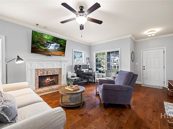 Cozy fireplaceHigh ceilingsWell-maintained interiorsWarm hardwood floorsCovered front porchLarge center islandQuiet backyard