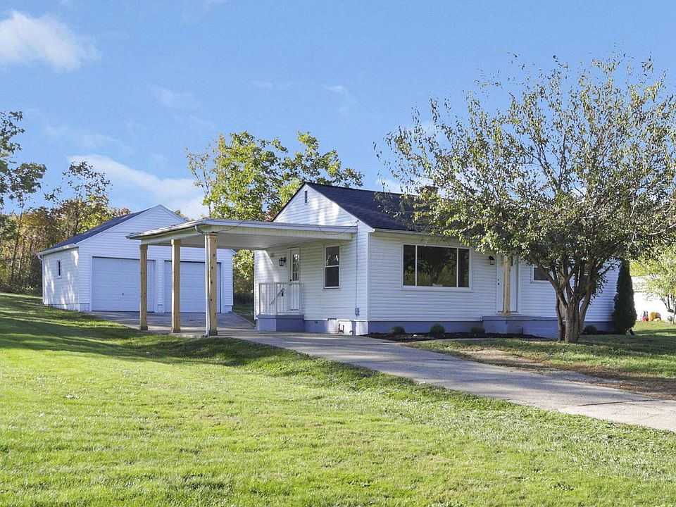 Nestled on 2 scenic acres in Bloom Carroll School district, this beautifully remodeled 3-bedroom, 1-bath ranch offers 1,227 sq. ft. of stylish, move-in-ready living. Featuring a brand-new roof, new windows, new appliances, granite countertops, and fresh modern updates throughout, this home combines charm and functionality. Expand your living area with this finishable basement! The spacious backyard is perfect for outdoor enjoyment, while the detached 2-car garage with a carport provides plenty of storage and parking options. Don't miss this peaceful retreat! Agent Owned.