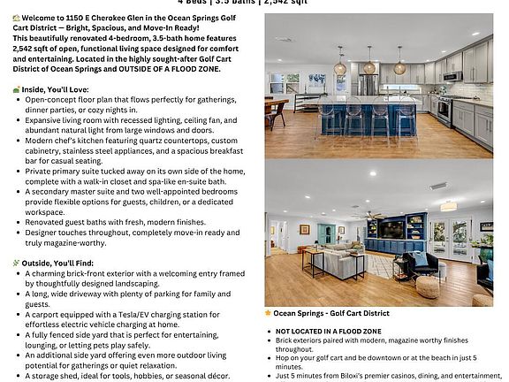 Located outside of a flood zone and within one of the top-rated school districts in Mississippi, this home sits in the heart of the Golf Cart District, surrounded by majestic live oaks that create a serene canopy of shade and Southern charm. You're just five minutes from the beach, downtown shops, art galleries, and restaurants, and only a short drive to the casinos and Biloxi nightlife. It's close to everything yet tucked away in a peaceful neighborhood that feels like your own private retreat.