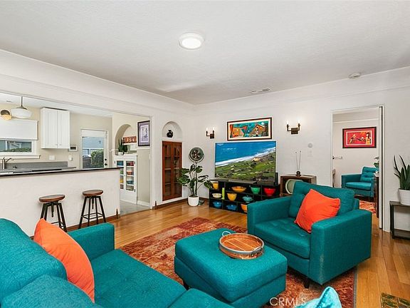 Beautiful, bright two bedroom, one bath home on a large, fully fenced corner lot for privacy and opportunities for an ADU. So many original features and details including cove ceilings, built-in cabinets, and a Spanish-style mock fireplace. Plus, new triple-pane, dual-hung swing-to-clean windows, new central air/heat, fresh paint, updated electrical panel and plumbing, remodeled bathtub/shower, and newer kitchen with quartz countertops, new refrigerator, and breakfast nook. Hardwood floors and open floorplan. Huge attic, large backyard, and spacious side yard with privacy hedges perfect for additions, entertainment, or just family fun, mature lemon tree, one car detached garage with included washer and dryer, and private driveway with two parking spaces. Walk the Greenbelt (the former Pacific Electric Rail line) to the Colorado Lagoon or around the corner to eclectic restaurants, boutiques, entertainment, professional service providers, and more. The beach is 10 blocks away. The Historic Zaferia neighborhood is the thriving home to some of the best restaurants in Long Beach. Find your new home at 1105 Euclid Avenue.