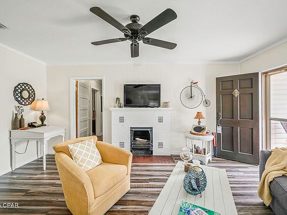 CURRENTLY UNDER CONTRACT, SELLER WILL CONSIDER BACKUP OFFERS. Coastal Cottage in the HEART of Port St. Joe! This delightful 3BR/2BA home blends comfort, character, and resilience — the perfect place to live the beach life. Originally built in 1947 and thoughtfully renovated, the home retains its Old Florida charm with a modern touch. Step into a sun-filled living room with luxury vinyl plank flooring and a cozy fireplace, setting the tone for relaxed coastal living. The spacious primary suite features an en-suite bath and private access to the 21' x 26' screened-in porch — ideal for sipping coffee or enjoying evening breezes. Two additional bedrooms offer flexibility — one perfect as a home office, bunkroom, or hobby space, plus a convenient laundry room. Set on a lot and a half (180' x 113') in an X Flood Zone, the yard is a dream: shaded by mature oaks and magnolias, with room to roam and entertain. The fire pit creates a cozy gathering spot for friends and family, while the powered shed and 50-amp RV hook-up with sewer clean-out are perfect for adventurers or guests. Located in golf cart-friendly Port St. Joe, where live music, boutique shopping, and fresh seafood are part of the everyday lifestyle. Cruise to the bay for sunsets, cast a line off the pier, or stroll through this charming coastal town known as Florida's ''Mayberry.'' Enjoy the day at the beaches of Cape San Blas, St. George Island, and Mexico Beach — your gateway to the best of Florida's Forgotten Coast. Call today for your private tour — and LIVE THE BEACH LIFE!