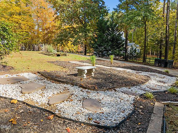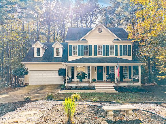 Would you like to go home to the feel of being in a mountain vacation home after a long day? This charming 2,100+ SF home sits on 1.39 acres in a serene and quiet neighborhood, just minutes from Raleigh, Garner, and Fuquay-Varina. Conveniently located just 2 miles from Costco, grocery stores, and dining options, you'll enjoy both peace and accessibility. The main floor boasts beautiful hardwood flooring throughout, while the spacious covered front porch invites you to relax and unwind. Inside, a generous bonus room offers plenty of flexibility for your needs. Two of the bedrooms offer walk-in closets, and the large primary bedroom is a true retreat with an en-suite bath complete with dual sinks and a soaking tub. Additional storage is available in the huge, mostly floored attic space with pull down stairs for easy access. The home features durable fiber cement siding, a newly installed heat pump, and a small workshop in the garage. Outside, the fenced backyard and shed provide additional space for storage and outdoor activities. The backyard is a true retreat and completely private. The property extends beyond the fence, where you will enjoy watching families of deer and wild turkeys from your deck. No HOA! If you want access to amenities, Eagle's Ridge Golf Course is accessible from within South Mountain (walking distance) and offers various levels of reasonably priced memberships to include 3 golf courses, pools, fitness centers and club house with a bar and grill.