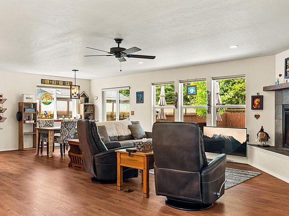Enjoy the perfect balance of convenience and North Idaho lifestyle in this beautifully appointed, low-maintenance, single-level home, ideally situated on a landscaped 0.24-acre lot right in the City of Sandpoint. This meticulously maintained 3-bedroom, 2-bathroom residence offers effortless living with a focus on both indoor comfort and outdoor enjoyment. Step inside to an inviting open concept design flooded with natural light and unified by durable wood laminate flooring throughout. The kitchen boasts newer stainless-steel appliances, a large sink, and a convenient bar with seating, seamlessly flowing into the living area where a cozy gas fireplace with charming bench seating provides warmth and ambiance. The home features a functional split floor plan, ensuring privacy by positioning the guest bedrooms on the opposite side of the residence from the expansive primary suite. En suite bathroom features tile finishes, dual sinks, and a relaxing soaking tub/shower combination, and is complete with two walk-in closets. Outside, the fully fenced backyard is complemented by a covered deck, an expansive Trex deck, hot tub, a dedicated firepit area, raised garden beds, and a useful storage shed. Property line extends beyond the fence with no backyard neighbors. Location is paramount: You are just minutes from the essential amenities of downtown Sandpoint and Lake Pend Oreille, highly desirable local spots like Miller's Country Store, area schools, and immediate access to outdoor activity via the Frisbee disc course and the trail network at Pine Street Woods. Furthermore, the property is only a short drive to the base of Schweitzer Mountain Resort, making it an ideal year-round hub. With a spacious, attached 2-car garage completing the package, this home allows you to spend less time on upkeep and more time enjoying everything Sandpoint has to offer.