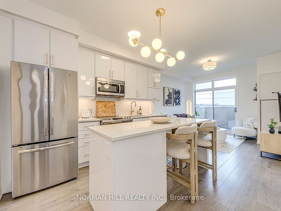 Beautiful and bright, this modern 638 sq. ft. condo (including a 43 sq. ft. balcony) in Milton's sought-after Ford community is a true showstopper. Impeccably decorated and in move-in condition, it features a stylish open-concept layout with 1 bedroom and a versatile den with a door, making it ideal as an office or nursery. Exceptionally well maintained, the unit offers high ceilings, a beautiful white kitchen with a large island, quartz countertops, laminate flooring throughout, a stand-up shower, and convenient in-suite laundry. Enjoy peaceful, scenic views of the pond right from your unit, an everyday highlight that adds to the home's charm. Additional conveniences include a same-floor locker for easy storage and an owned parking space located close to the building entrance. The unit has been extensively upgraded within the last year, including under-cabinet lighting in the kitchen, a new dishwasher, a new stackable laundry machine, upgraded light fixtures throughout, fresh paint, custom closet organizers in both the bedroom and pantry, new matte-black door handles, new cabinet hardware, a deep single-basin kitchen sink, new kitchen and bathroom faucets, two bedroom sconces with individual switches, an upgraded bathroom mirror, a Google Nest thermostat, and upgraded matte-black shower controls and shower head. Custom lighting upgrades and thoughtful finishes throughout enhance the home's warm, modern, designer feel. Ideally located near transit, parks, schools, shopping, and ample visitor parking, this stunning condo reflects true pride of ownership and is an absolute must-see.