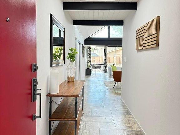 This beautifully maintained and thoughtfully customized Eichler home blends timeless mid-century modern architecture with contemporary comfort. The open floor plan creates a seamless flow between living, dining and kitchen spaces, perfect for entertaining and relaxing in style. Radiant heated floors provides cozy, energy-efficient comfort year round. Extra insulation in the A frame roof. The custom-designed kitchen features abundant cabinetry with lots of pull out drawers/cabinets and a layout ideal for cooking and conversation. Two whole house fans ensure effortless climate control, enhancing the homes natural ventilation. See disclosures for more upgrades.