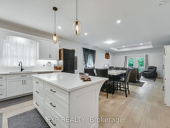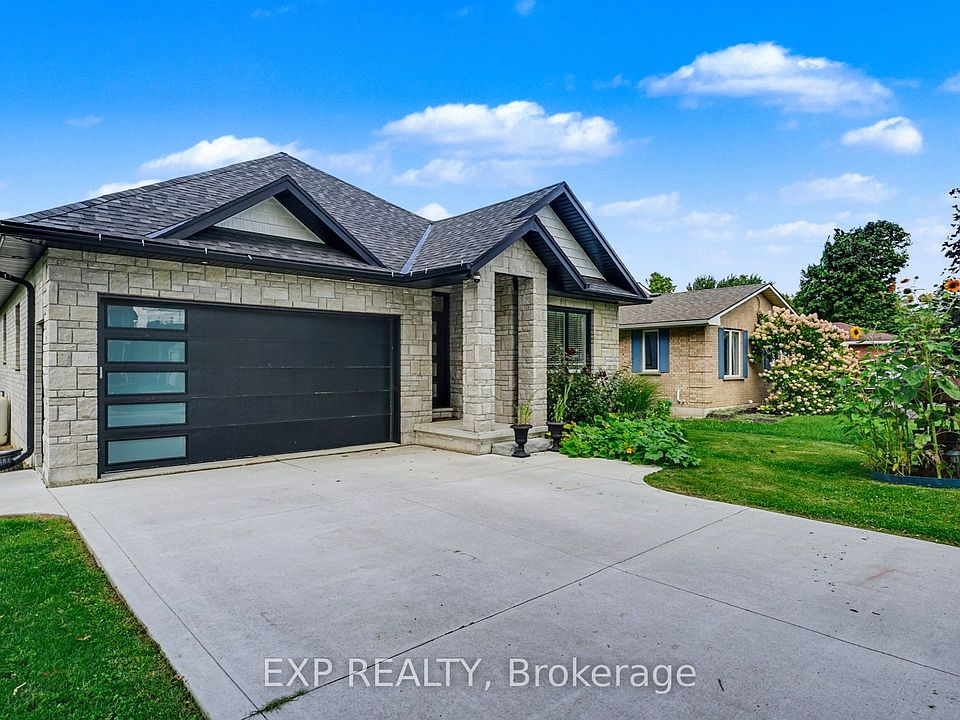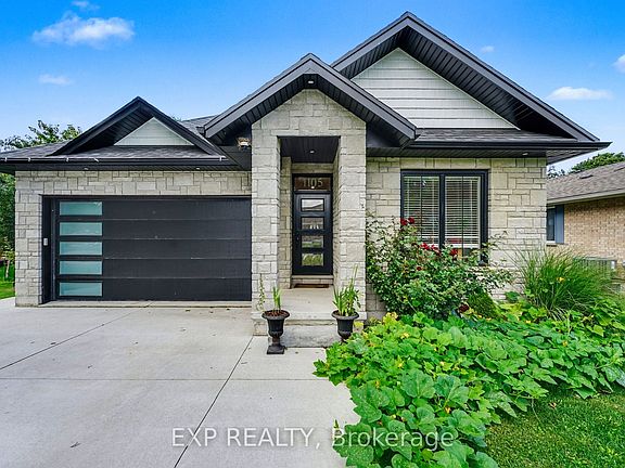 WOW!!! 3 YEARS NEW & Approx. 3,600 Sq/FT HOME. Discover the perfect fusion of modern design and tranquil charm at 1105 Marietta Street in Wroxeter. Built just three years ago, this expansive bungalow offers over 3,000 sq ft of cozy living space on a generous lot, ideal for a growing family or those seeking premium comfort. The heart of the home is the open-concept main floor, anchored by a dazzling chef's kitchen featuring quartz countertops, abundant storage, and a seamless flow into the dining area. The bright living room is a cozy retreat, warmed by a propane fireplace and accented with pot lights and hardwood floors. Step outside through patio doors to a large deck, complete with built-in lighting, perfect for entertaining or relaxing under the stars. The main floor hosts a luxurious primary suite with a walk-in closet and a tiled ensuite, along with two additional spacious bedrooms, a full bath, and a convenient main-floor laundry room. The value continues downstairs in the fully finished basement. Boasting high ceilings and a massive, pot-lighted rec room, this space is ready to become your ultimate home theatre, gym, or playroom. Two additional bright bedrooms and another full bathroom make this lower level functional and versatile. Curb appeal is provided by the handsome stone-and-brick exterior and front accent lighting. Beyond the 1.5-car garage and double concrete driveway, the backyard is a gardener's dream with established fruit trees (including chestnut, apple, and various berries) and raised garden beds. Enjoy the simple pleasures of small-town living; you're just a short stroll from the Wroxeter Harbour boat launch/Mill pond and surrounded by nearby trails and parks. All the amenities of Listowel are just a 20-minute drive away. This property offers the space, upgrades, and lifestyle you've been searching for.