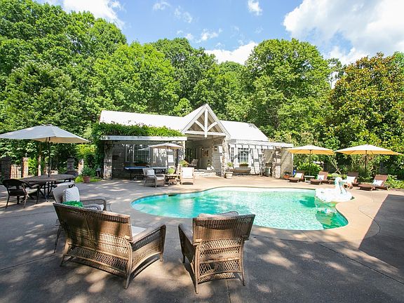 La Pearla Ranch offers the rare flexibility to be a private sanctuary or an income-generating asset. Set on 35 acres just 20 min from Nashville and 3 min from the Golf Club of Tennessee, this gated compound is great for full-time living, a weekend retreat, or a revenue-producing short-term rental, or event venue. An additional 30 contiguous acres also available with a half a mile of road frontage. A-List celebrities are moving to Kingston Springs, for its convenience, safety and privacy. This recently renovated property, features 7 beds, 8 baths, and 7 fireplaces across 3 unique structures. Upon entering through iron gates and past 9ft stacked stone walls, you’re greeted by koi ponds, towering trees, and manicured gardens. The main residence is designed with entertaining in mind, with multiple covered porches that create effortless indoor/outdoor flow, perfect for hosting or simply enjoying the scenery. The pool and surrounding patios provide a beautiful setting for outdoor relaxation.The poolside guest house offers two private suites, one with a full kitchen, while "The Pentagon" offers flexible space ideal for a home office, gym, or recording studio. The newly expanded and renovated kitchen is a true showpiece, featuring a stone fireplace, a 9-ft island, and high-end appliances—perfect for both intimate family meals and large-scale entertaining.The primary suite is a sanctuary of luxury, complete with its own fireplace, 3 spacious closets, and a spa-like bathroom suite. The 10-ft window overlooking the forest brings the outdoors in, offering a tranquil, and peaceful atmosphere.The finished basement is an entertainer's dream, complete with a billiard room, wet bar, wine cellar, and wellness suite with an infrared sauna. The estate includes a 6 car garage, providing ample space for your vehicles and recreational toys. For equestrian enthusiasts, the property features 2 fenced pastures, a barn, and plenty of room for expansion.