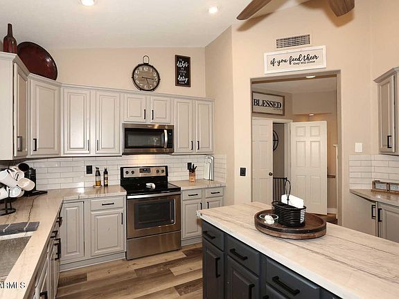 NEW $50K PRICE CUT - SELLER MOTIVATED! Gorgeous custom 3465 sf remodel tucked away on 1.3+ acre cul-de-sac lot featuring split flexible floorplan ideal for multiple uses. Pleasing neutral color palette: LVP wood floors throughout, updated kitchen w/tile backsplash, updated cabinets and hardware, quartzsite counters, breakfast bar and island, stainless appliances, and huge picture window overlooking resort-pool setting and Superstition mountains. New bathroom showers, tile, hardware, faucets, vanities, lighting, soft close toilets. Primary suite w/sitting area and backyard exit. Nice-sized secondary bedrooms. Split flex wing for Multigen, business, hobbies, or rental income possibilities: includes a family room w/backyard exit, kitchenette w/breakfast bar, bedroom and bath, plus bonus room w/separate exit. Heated Pebble Radiance pool & spa w/smart system, travertine patios & walkways, new gazebo w/swim up bar, built-in gas bbq, TV mount, and refrigerator. Side yard watering system for garden use. Superstition Views! No HOA. Seller has pre-listing home inspections done (roof & pool too). In-ground termite control system transferable. Close to lakes. SEE FLOORPLAN in photos.