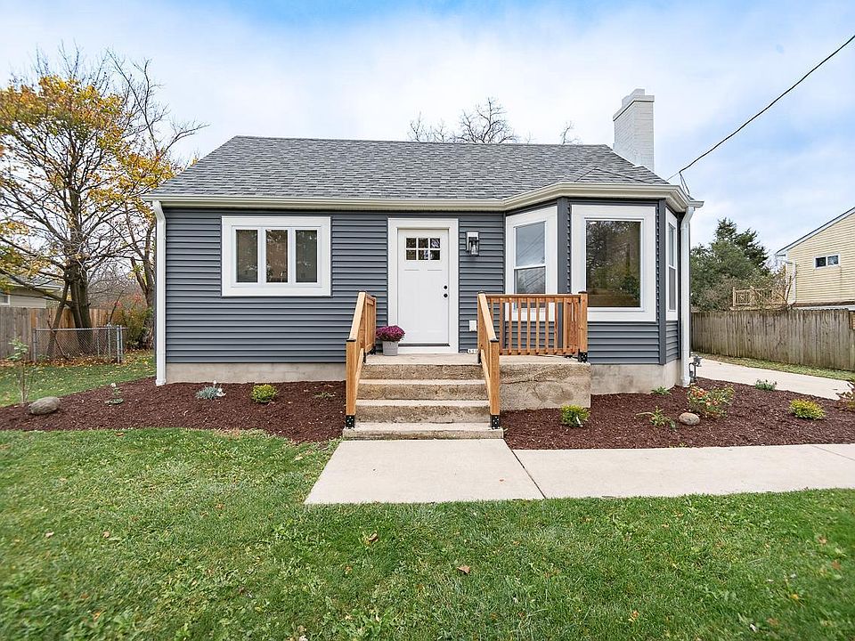 All the boxes are checked with this charming move-in ready, maintenance free, beautifully renovated 2 bedroom, 2 bath, 1,042 Sq. foot ranch! The interior of this home welcomes you with brand new flooring, painting, lighting and doors throughout! The fully renovated kitchen features brand-new cabinets and quartz countertops. Each bedroom boasts walk-in closets. Enjoy the ease of first floor laundry and 2 full baths that are completely renovated with new toilets, vanities, tile showers, and flooring. Dream away about your large basement with remodeling or storage potential. A new water heater, updated electric, plumbing, and new windows add to your peace of mind. The exterior of the home and 2 car detached garage is hassle free with a new roof, vinyl siding and a fenced in backyard.