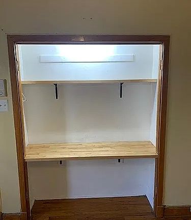 Shared yardCorner studio apartmentGood sized closetNice separate kitchenHardwood floorsWork alcove