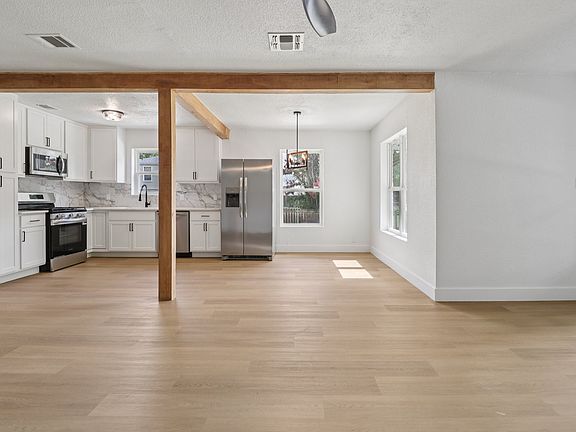 Fully renovated and move-in ready, this beautifully updated home in the heart of Scenic Bluff offers 3 spacious bedrooms, 2 modern bathrooms, and a flexible floor plan with a bonus living area ideal for a home office, game room, or den. The high-end kitchen is equipped with a large island, sleek white cabinetry, and stainless steel appliances including a refrigerator, electric cooktop, built-in ice maker, dishwasher, and disposal making it perfect for entertaining. Elegant laminate flooring flows through the main living spaces, with ceramic tile in the kitchen and bathrooms for added style and durability. Thoughtful upgrades include decorative lighting, textured ceilings, central electric air and gas heating, and a separate utility room. Outside, enjoy a fully fenced, lush green yard with charming wood fencing, a covered patio, exterior lighting, and oversized open parking for multiple vehicles or recreational use. Located in Fort Worth ISD and just minutes from Oakhurst Elementary, Riverside Middle, Carter-Riverside High, local parks, shopping, dining, and easy access to I-35W this home combines comfort, style, and convenience.