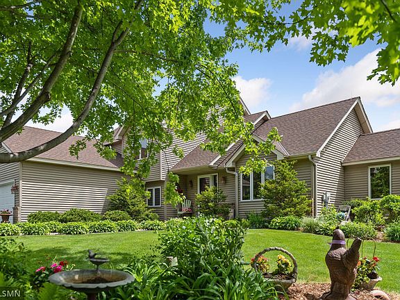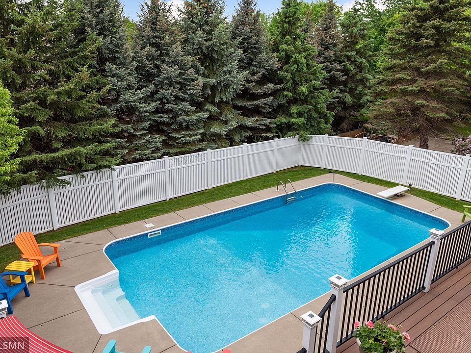 Stunning Hazeltine Bluff home is a beautiful mix of indoor and outdoor living, engulfed by mature pine trees and berms filled with perennial flowers. Summer at last so lets start with the beautiful in-ground pool with seating areas on multiple decks, patios to enjoy with friends and family. Inside updates include granite countertops in the kitchen as well as tile flooring in the foyer, kitchen, and dinette. The Kit/ ID and living room have expansive vaulted ceilings, and the main level includes a bump out DR. The family room has floor to ceiling, wall to wall bookshelves, wet bar area and a gas fireplace. The 4th BR is currently used as an office. 3 large BRs up, all with ample storage. Nice owners bath suite. The lower level has a large Rec Room, ideal for gaming or a home theater. Huge side yard for a killer volleyball court. Multiple garden boxes for vegetable and flower gardening as well. Located 3/4 block from a 9-acre park and miles of city trails.