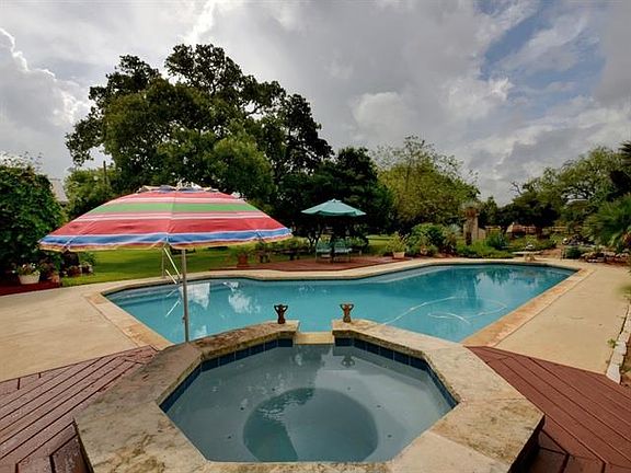 This spacious home sits on 4.19 acres, fenced & crossed fenced with a deer proof garden & horse corral- the ideal home for horses! The open layout is light & bright throughout with a bonus sunroom. Features include wood & tile flooring, two rustic brick fireplaces, and a 30 amp TV hook up on property! The beautiful private backyard comes with a pool, hot tub & covered pergola. The perfect place to entertain guests! Complete with a mother-in-law wing. Avoid nearby high water rates with your own well!