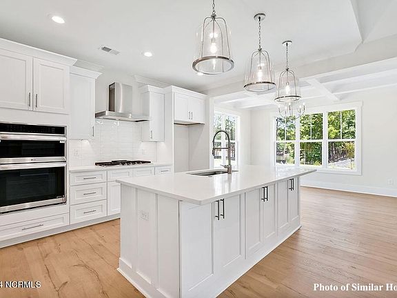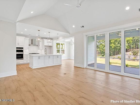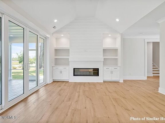 Nestled within this exclusive gated waterfront community, less than 10 minutes from downtown Wilmington by boat or car, this stunning new home from Kirk Pigford Homes combines Southern charm with modern sophistication. Step onto the inviting rocking chair front porch and feel the warmth of community greet you. Inside, an open concept layout awaits, inviting seamless entertainment in the spacious great room featuring vaulted ceilings and fireplace flanked by custom built-ins, seamlessly connecting to a rear screened porch. The gourmet kitchen is a chef's delight, boasting a large center island, quartz countertops, and top-of-the-line stainless steel appliances, including a gas range with hood and wall oven. The adjacent dining area, adorned with coffered ceilings, sets the scene for memorable gatherings. Retreat to the owner's suite, offering tranquility with its trey ceiling, large walk-in closet, and spa-like bath featuring a spacious double vanity and fully tiled walk-in shower. Two additional guest bedrooms share a well-appointed hall bathroom, while the upstairs bonus room with a full bath offers versatility as a fourth bedroom, guest suite, or private retreat. Parking is a breeze with the courtyard style garage, complete with a huge storage closet. Every detail of this home exudes luxury and comfort, making it an unparalleled opportunity to own a piece of paradise in Sunset Reach. Sunset Reach is located on the Northeast Cape Fear River and offers an array of amenities designed to enhance your leisurely pursuits. Embark on leisurely strolls along the walking trail, or partake in kayaking adventures on the serene interior lake. Anticipate the allure of future amenities including a riverfront marina with boat slips available for purchase, a community pool with clubhouse, and a pickleball court, promising a lifestyle defined by relaxation and recreation.