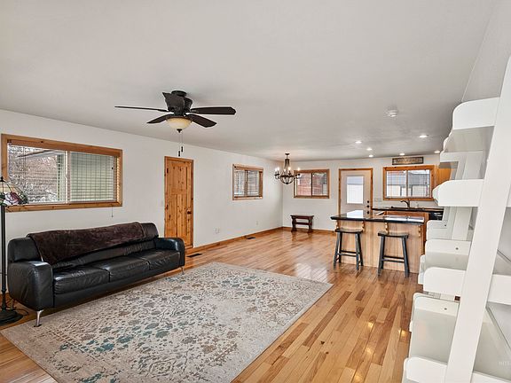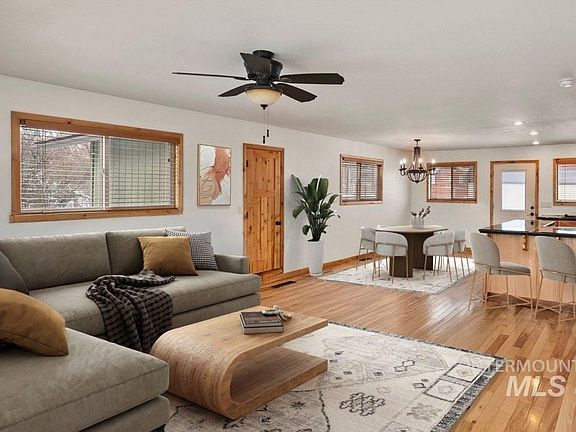 Nestled within of Salmon Idaho lies this beautiful 4-bedroom, 2.5-bath, 2,400 sq. ft. home. The main level features an open floor plan with a bright living room, dining area, and kitchen. Down the hall are an office, half bath, and a primary suite complete with a walk-in closet, and ensuite bathroom featuring a jetted tub and dual-showerhead in the walk-in shower. The lower level has its own entrance and offers a cozy family room with a wood-burning fireplace, a laundry room, full bathroom, and three guest bedrooms. Amenities include public water and sewer, a separate well for the sprinkler system, and a geothermal heat pump. Relax in the fenced backyard, complete with a patio, propane BBQ grill, and mountain views. The backyard features a 26'x10' shed with a roll up door. Fruit trees and gravel pad with side gate access complete the outdoor space. This home is waiting for its next owners—schedule a showing today! (Living room, kitchen, and dining room photos are virtually staged)