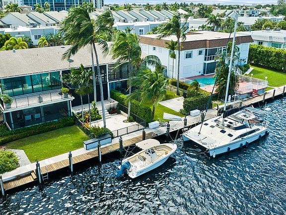 Beautifully appointed townhome located on a quiet street one block from the beach in the highly sought after beach town of Highland Beach. This completely redone townhouse appointed w/designer touches is a must see! Main living area is grand with a view of the water from all angles. The galley kitchen opens to the living area with custom white cabinetry & white quartz counters. The upper level features the primary suite w a large balcony for sunbathing or enjoying the water views. The secondary bedroom has en suite bath.California sliders take you to the screened patio with a summer kitchen & Tv to make enjoying the Florida lifestyle that much better. This townhome has a 40 foot dock space so bring your boat! Electric & water available. Minutes to the intracoastal with NO fixed bridge