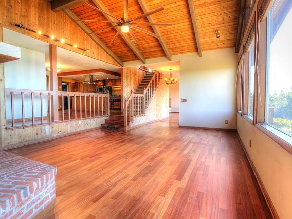 Stunning panoramic ocean, bay and bridge views can be enjoyed from every room in this spacious home perched at the very top of desirable Walker Heights. Main level living with spacious master suite, plenty of indoor and outdoor space for entertaining with amenities including gas fire pit, gas and wood burning fireplaces, hot tub, heated floors and more.