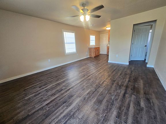 - Exterior features: 1 bathroom, 2 bedrooms, LVP flooring throughout, Open Concept, beautiful kitchen cabinets, fully remodeled, large backyard, separate large utility room, spacious bathroom with storage and combo tub/shower