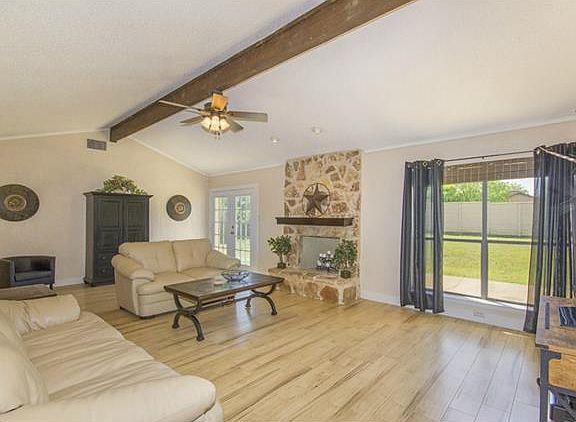 Gorgeous home with light wood laminate flooring, vaulted beam ceiling in living area, beautiful granite counter tops and tile back splash in the kitchen! The master bath features a pedestal bath tub and granite chest type vanity. The oversized laundry/mud room makes an excellent play area for the kids or office area. The oversized back yard boasts an open patio and in-ground pool. Located close to Bowman Park and minutes from schools and shopping, this is a definite must see!!